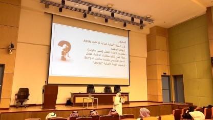 برعاية عميد كلية العلوم د. عثمان بن موسى حكمي ، أقامت كلية العلوم بمسرحها بالمدينة الجامعية عرضا ً خاصا ً بعنوان ( الإعتماد الدولي لبرامج الكلية والأقسام المناظرة من المنظمة الألمانية ASSIN ) . قدم العرض وكيل الكلية للبحث والتطوير الدكتور / يحيى العجلاني حيث قدم عرضا ً مفصلا ً تضمن قرار الهيئة الألمانية الدولية للإعتماد ASSIN ، كما تحدث عن متطلبات وشهادات الإعتماد ، بعد ذلك عرض متطلبات الإعتماد الكامل وخطط العمل اللازمة لتلبية هذه المتطلبات ، ثم ختم مشاركته بعرض توصيات الهيئة . وتعد ASSIN وكالة اعتماد ألمانية وأوروبية معترف بها في الهندسة والمعلوماتية والعلوم الطبيعية والرياضيات ، حيث تنظر إلى جودة البرامج الدراسية كنيجة لعملية تأهيل تعمل بنجاح ،والتفاعل بين عناصرها و أخيرا ً تحقيق هدفها وهو تحقيق مخرجات التعلم الموجوة للطلاب .