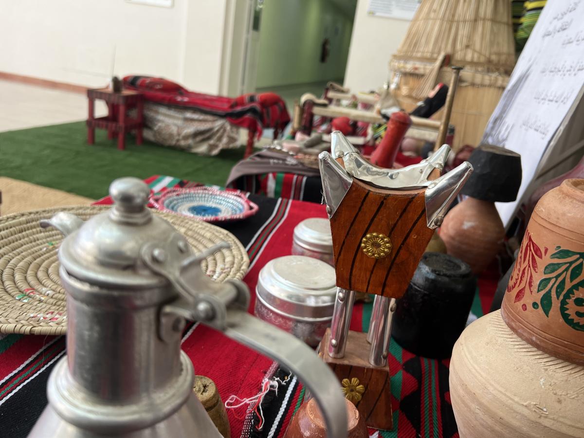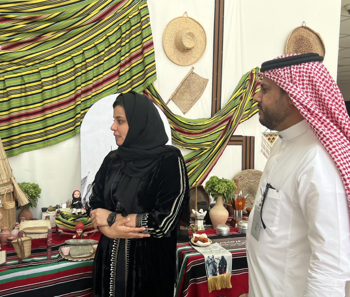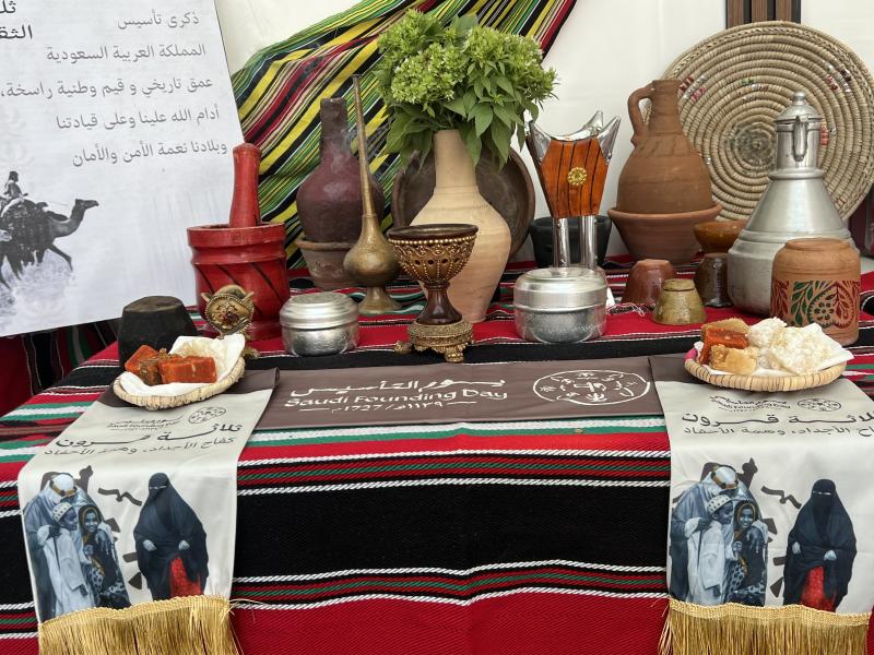 صاحب الاحتفال معرض ، يحوي أركانًا تحكي معاني جوهرية تعكس عمق الروح الوطنية و اعتزازها و فخرها بهويتها و بدايتها حيث غطت المعرض الأجواء التقليدية التي نقلت الزوار إلى منطقة جازان في الماضي ،،