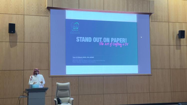 نفذت وحدة الخريجين بالتعاون مع وحدة الأنشطة الطلابية بكلية طب الأسنان بجامعة جازان يوم الاثنين الموافق 21 أبريل 2025 محاضرة بعنوان "فن كتابة السيرة الذاتية" قدمها الدكتور ياسر الحازمي.