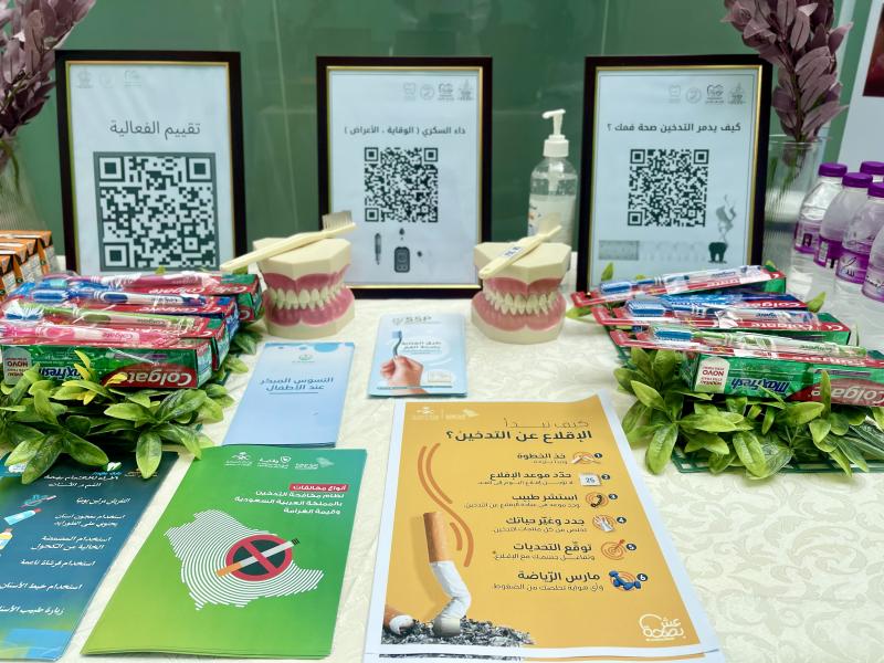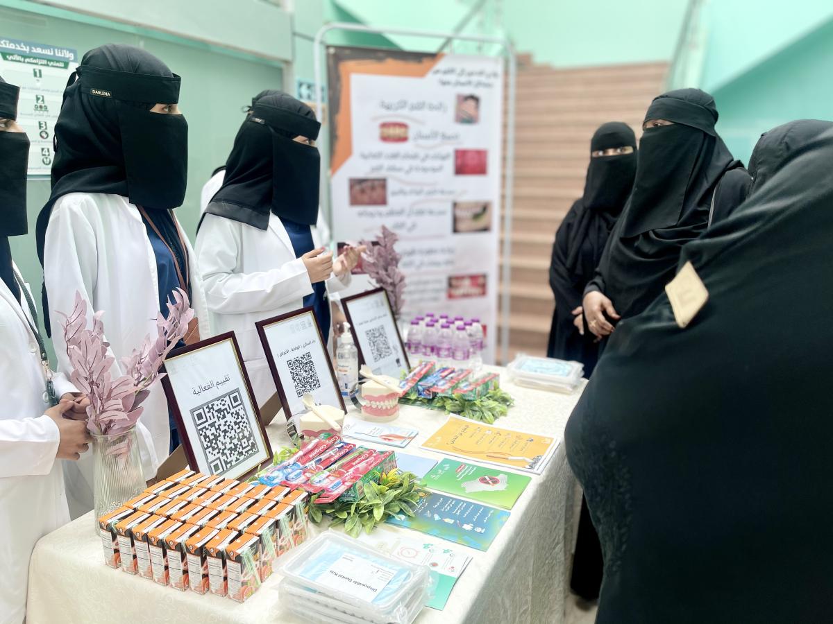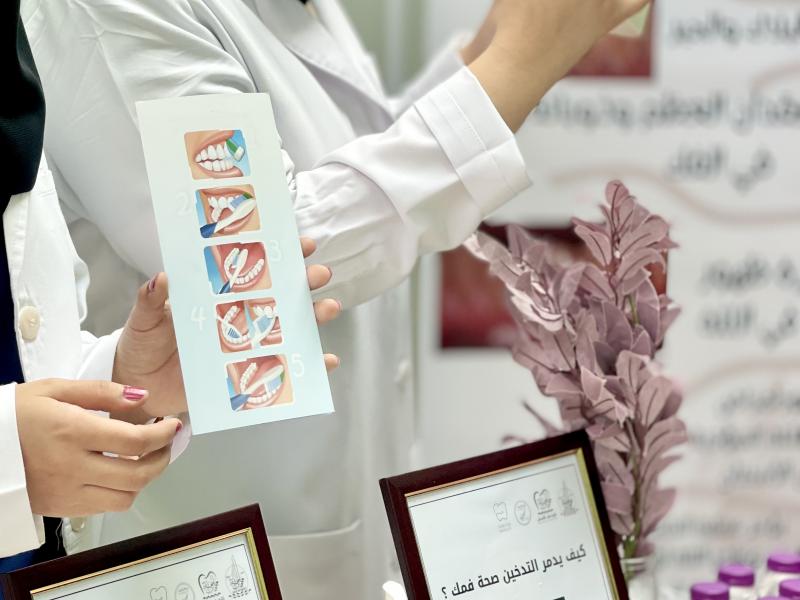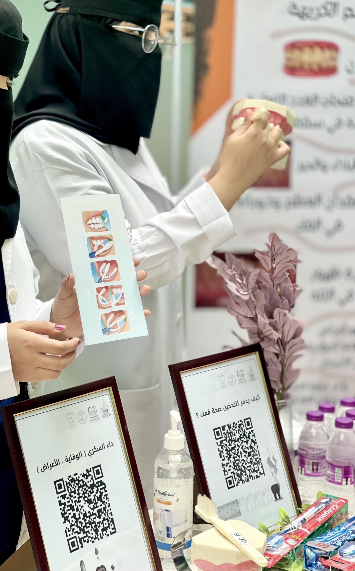 واستعرض طلاب الامتياز من خلال المعرض المقام أهمية تعزيز صحة الجسم والتوعية بخطر مرض السكري بالإضافة إلى أهمية الابتعاد عن كل ما يهدد صحة الفم والأسنان ، كما تم توزيع المنشورات التوعوية بالإضافة إلى عرض باركود يحتوي على الكثير من المعلومات القيمة حول التدخين والسكري.