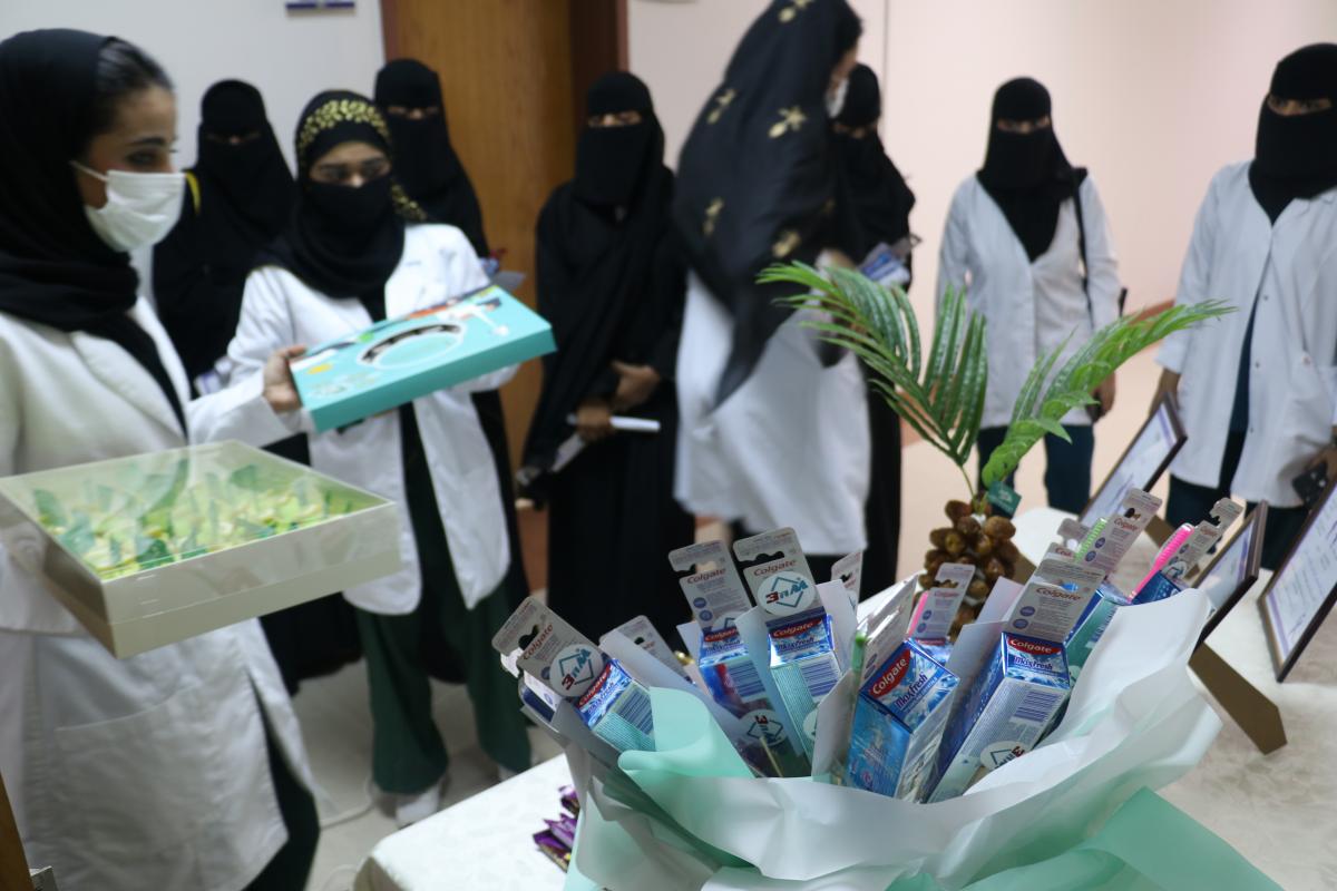 واستهدف البرنامج الذي قدمه طالبات الكلية ؛ مراجعي عيادات كلية طب الأسنان بهدف التعريف بالمرض من خلال معرفة أسبابه وأعراضه والتوعية بسبل الوقاية منه وذلك من خلال إقامة ركن توعوي بالإضافة إلى توزيع المنشورات التي تحتوي كافة المعلومات عن المرض.