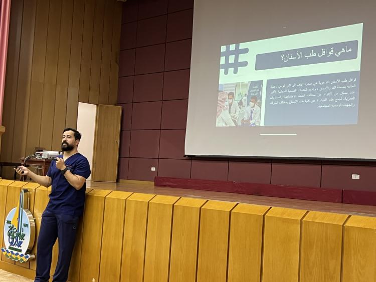 نفذت وحدة خدمة المجتمع بكلية طب الأسنان برنامجًا تدريبيًا لفريق #قافلة_طب_الأسنان_التوعوية، وذلك يوم الأربعاء الموافق 29 يناير 2025 في مسرح الكلية. قدم البرنامج الدكتور موسى شبير، حيث تناول تعريفًا شاملاً بأهداف القافلة، والتي تهدف إلى نشر التوعية بأهمية العناية بصحة الفم والأسنان، خاصة في المناطق النائية والمحرومة.
