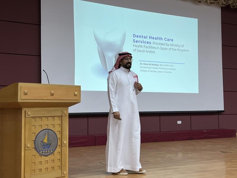 ألقى عضوء هيئة التدريس الدكتور موسى بن علي شبير الحاصل على دكتوراه في طب أسنان المجتمع يوم الثلاثاء الخامس من سبتمبرعلى مسرح الكلية محاضرة بعنوان ( خدمات الرعاية الصحية للأسنان في منطقة جازان ) وكانت أهم الأهداف التي تمحورت عليهاالمحاضرة هي تقييم الوصول إلى خدمات طب الأسنان بمنطقة جازان
