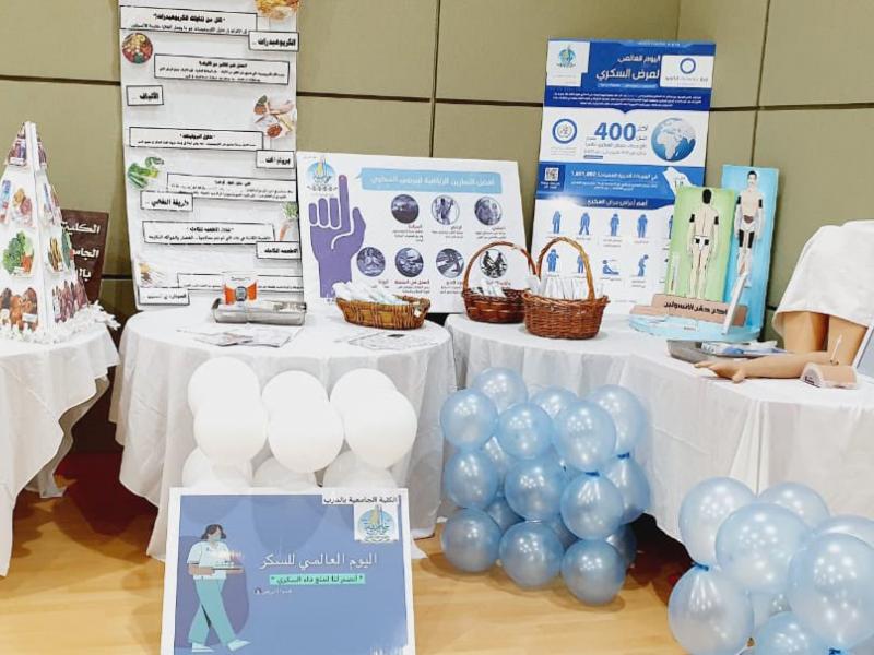 تزامنًا مع اليوم العالمي للسكري قدمت طالبات قسم التمريض فعالية توعوية صباح يوم الخميس الموافق 18/11/2021م