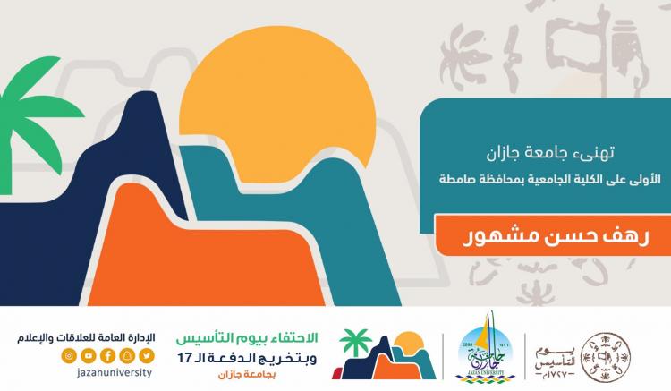 تبارك الكلية الجامعية بصامطة للطالبة الأولى على خريجات الكلية ١٤٤٣ هـ الطالبة/ رهف حسن مشهور بقسم الكيمياء.