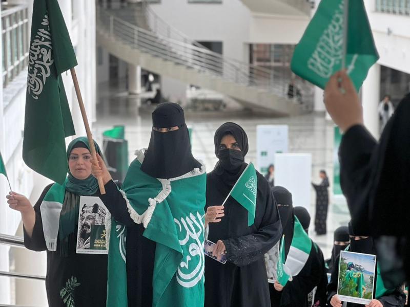 طالبات التصميم والعمارة يحتفلن بيوم العلم السعودي
