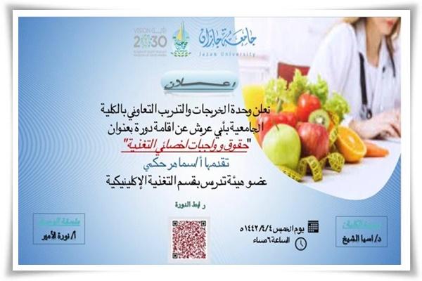 وحدة الخريجات والتدريب التعاوني بالكلية تُقِيم دورة بعنوان(حقوق وواجبات اخصائي التغذية)