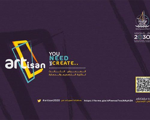 برعاية سعادة وكيلية الجامعة لشؤون الطالبات أ.د/ عائشة زكري تم افتتاح المعرض الثالث لكلية التصميم والعمارة Artisan 2020 لعرض مشاريع الطالبات .