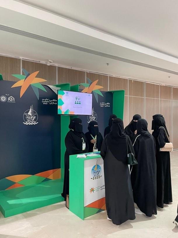 شاركت كلية إدارة الاعمال ممثلة في وحدة ريادة الأعمال بجامعة جازان وذلك ضمن مشاركة الجامعة في ملتقى تمكين وتوطين ٢٠٢٢ الذي ينظمه فرع وزارة الموارد البشرية والتنمية الاجتماعية بجازان. حيث شاركت الوحدة في التعريف بالخدمات التي تقدمها في مجال ريادة الأعمال والتشجيع عليها وتقديم الاستشارات اللازمة لذلك .