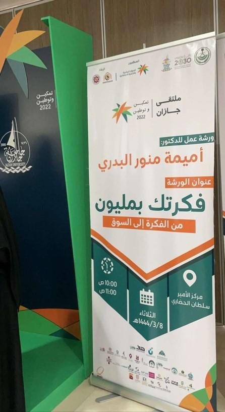 كما قدمت رئيسة وحدة ريادة الأعمال ورشة تدريبية للطلاب والباحثين عن العمل بعنوان فكرتك بمليون، والتعريف بريادة الأعمال وكيفية الاستفادة من أفكارهم وتخصصاتهم وتحويل هذه الأفكار إلى مشاريع ريادية أو تجارية أو صناعية تعود بالنفع عليهم وعلى المجتمع.
