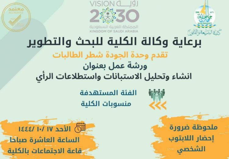 ورشة عمل بعنوان إنشاء وتحليل الاستبانات واستطلاعات الرأي