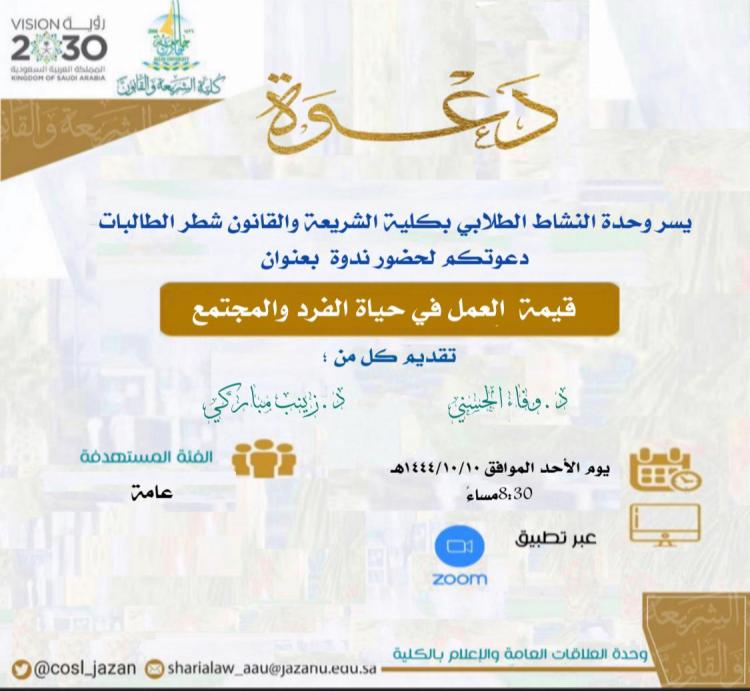 ندوة بعنوان " قيمة العمل في حياة الفرد والمجتمع "