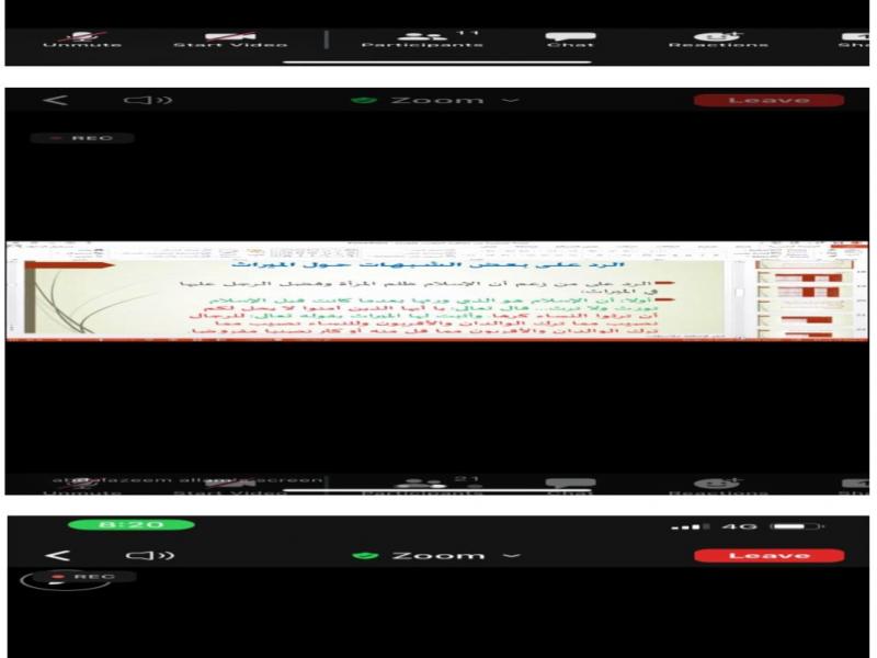 نفذت وحدة الجودة والاعتماد الأكاديمي بكلية الشريعة والقانون دورة بعنوان لمحة مختصرة عن مفاهيم المواريث والوصايا قدمها د.عبد العظيم توفيق علام عضو هيئة التدريس بكلية الشريعة والقانون بقسم الشريعة تناول فيها تعريف الطلاب ببعض المفاهيم المتعلقة بالمواريث والوصايا و التعريف الميراث والحكمة من تشريعه وحكمة التفاضل فيه ورد عن بعض الشبهات المثارة والمنتشرة في باب المواريث ثم عرف بالوصية وحكمة تشريعها وبعض الأحكام الحاكمة لها ، وقد اشتملت الدورة على عرض مرئي ورد على تساؤلات الطلاب حول الموضوع.
