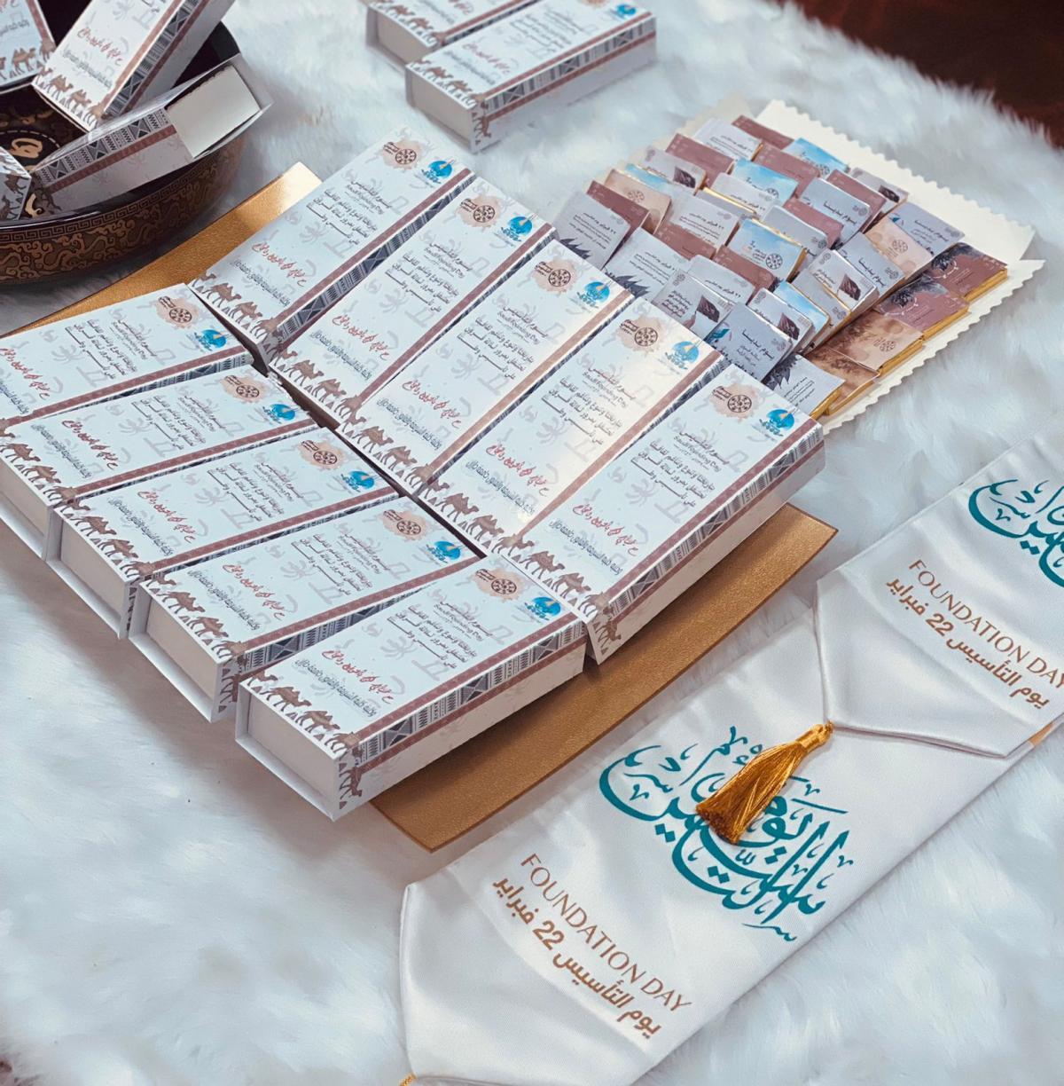 وجهت فيها سعادة وكيلة الكلية رسالة شكر لجميع فرق العمل في الكلية من مساعدات رؤساء أقسام وأعضاء الهيئة التدريسية والإدارية على ما قدموه من جهود في سبيل إنجاح العملية التعليمية والاختبارات النهائية ، متمنية النجاح والتفوق لطالبات الكلية وسائلةً المولى القدير أن يوفقهن لتحقيق طموحاتهن وحثهن على مضاعفة الجهد خلال مشوارهن القادم كما شاركت سعادتها أيضا بتقديم هدايا و توزيعات تذكارية بمناسبة يوم التأسيس ليمنحنا فرصة الاحتفاء بهذه الذكرى العزيزة علينا جميعًا وينّمي مشاعر الفخر والاعتزاز بهذا الوطن العظيم..