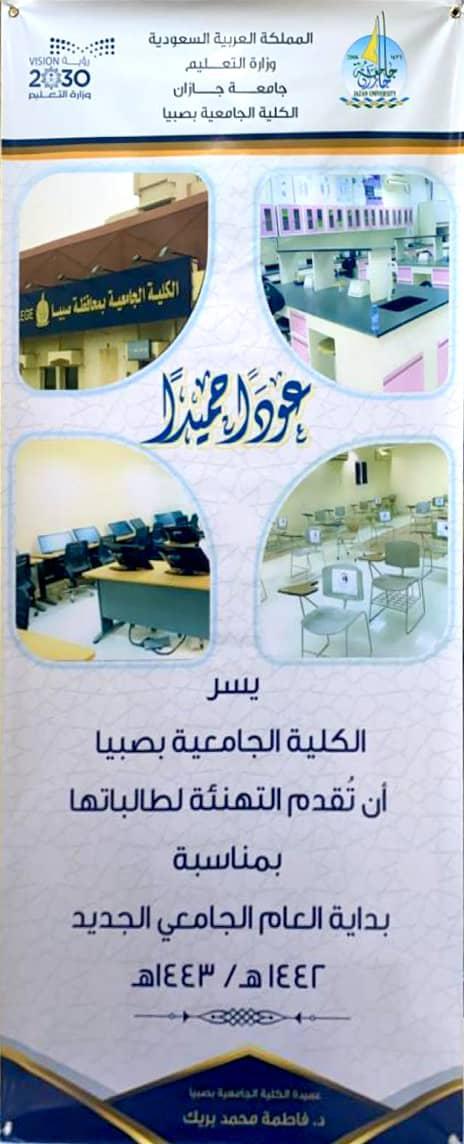 نظمت الكلية الجامعية بصبيا يوم الاربعاء الموافق ١ / ٢ / ١٤٤٣ حفل لاستقبال طالباتها المستجدات في أقسامها العلمية الثلاثة: علوم الحاسب الآلي، والمحاسبة، والتمريض، مع الالتزام بكافة الاجراءات الاحترازية والإرشادات الوقائية، وحضر الحفل وكيلة الكلية للشؤون الاكاديمية ورئيسات الاقسام ومديرة الإدارة، ومنسقات الوحدات ( وحدة الارشاد الطلابي،وحدة النشاط الطلابي، وحدة خدمة المجتمع) وقدمت خلالها سعادة عميدة الكلية التهنئة لطالبات الكلية متمنية لهن دوام التوفيق والسداد.