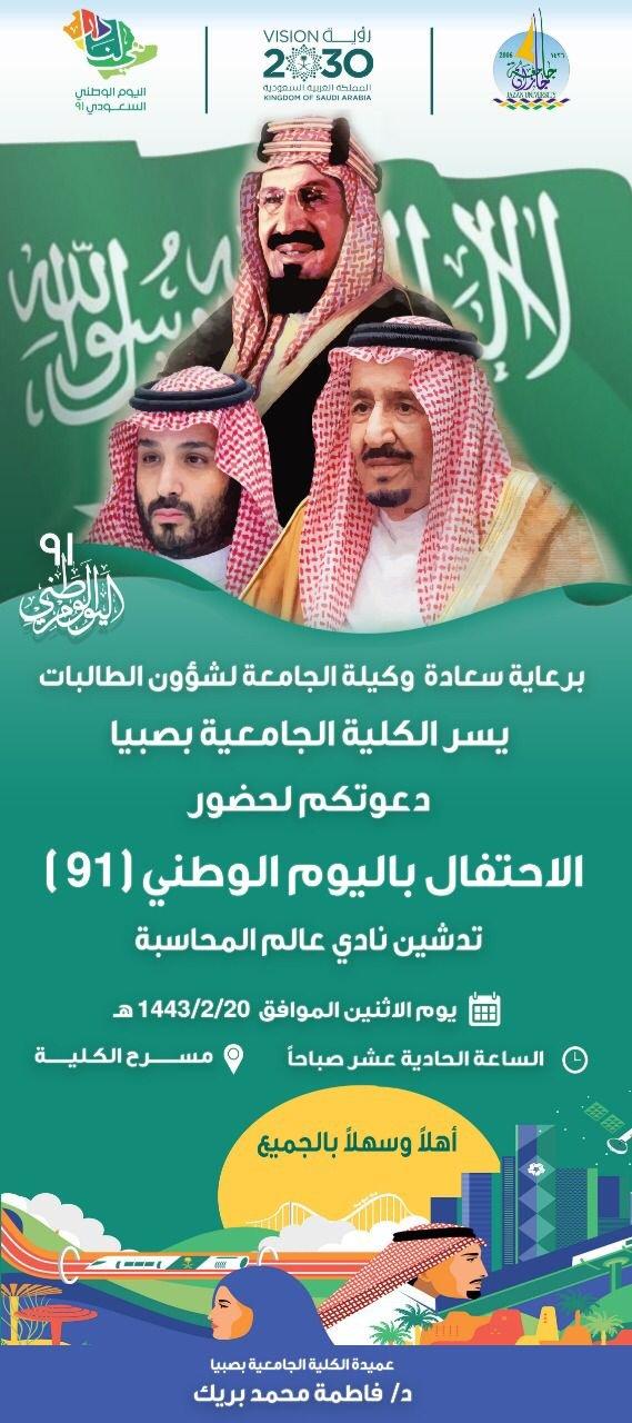 الاحتفاء باليوم الوطني السعودي ٩١ بالكلية الجامعية بصبيا