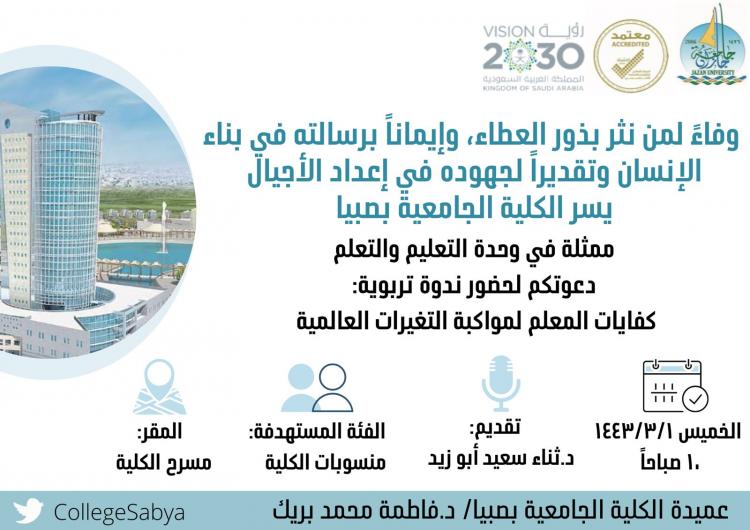 ندوة "كفايات المعلم لمواكبة التغييرات" بالكلية الجامعية بصبيا