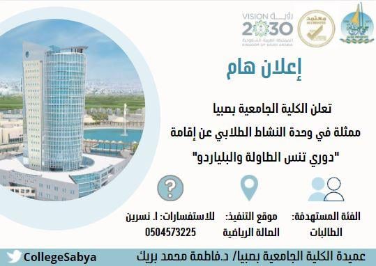 دوري لكرة التنس والبلياردو بالكلية الجامعية بصبيا