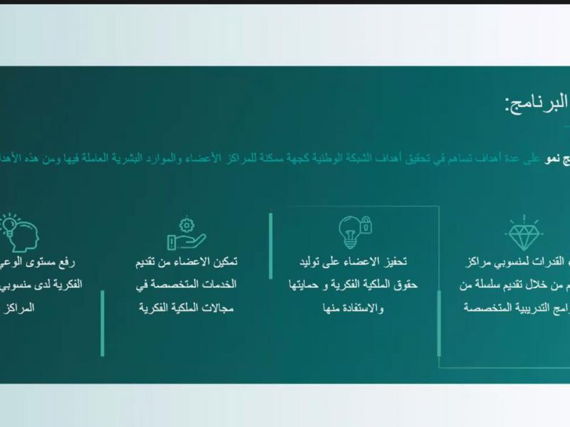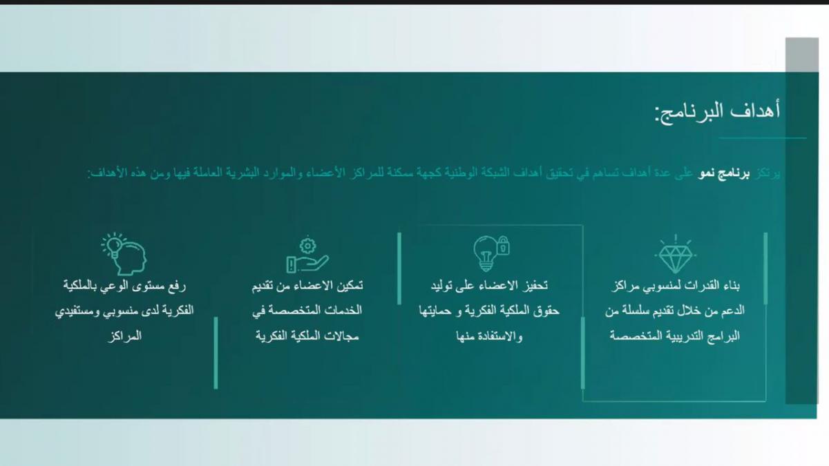 شارك منسوبو مركز الابتكار وريادة الأعمال بجامعة جازان في برنامج نمو والمقدم من الشبكة الوطنية لمراكز دعم الملكية الفكرية TISC عبر منصة ZOOM، والذي يهدف إلى رفع مستوى الوعي بالملكية الفكرية لدى منسوبي ومستفيدي المراكز و تحفيز الأعضاء على توليد حقوق الملكية الفكرية وحمايتها والاستفادة منها كذلك بناء القدرات لمنسوبي مراكز الدعم من خلال تقديم سلسلة من البرامج التدريبية المتخصصة
