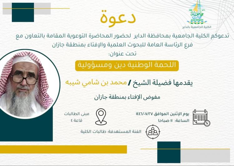 زيارة مفوض الإفتاء بجازان فضيلة الشيخ/ محمد بن شامي شيبة للكلية الجامعية بالدائر