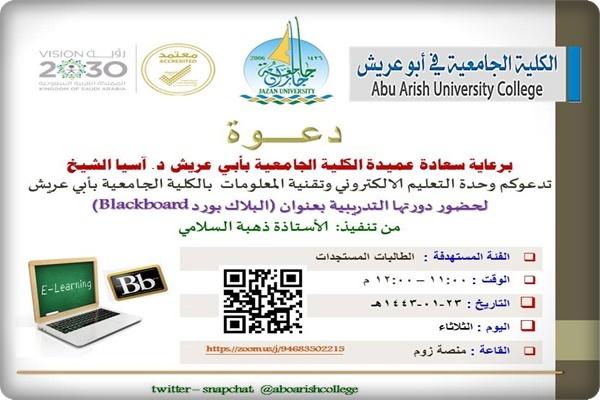 وحدة التعليم الإلكتروني بالكلية تنفذ دورة عن نظام البلاك بورد (Blackboard) للطالبات المستجدات20221