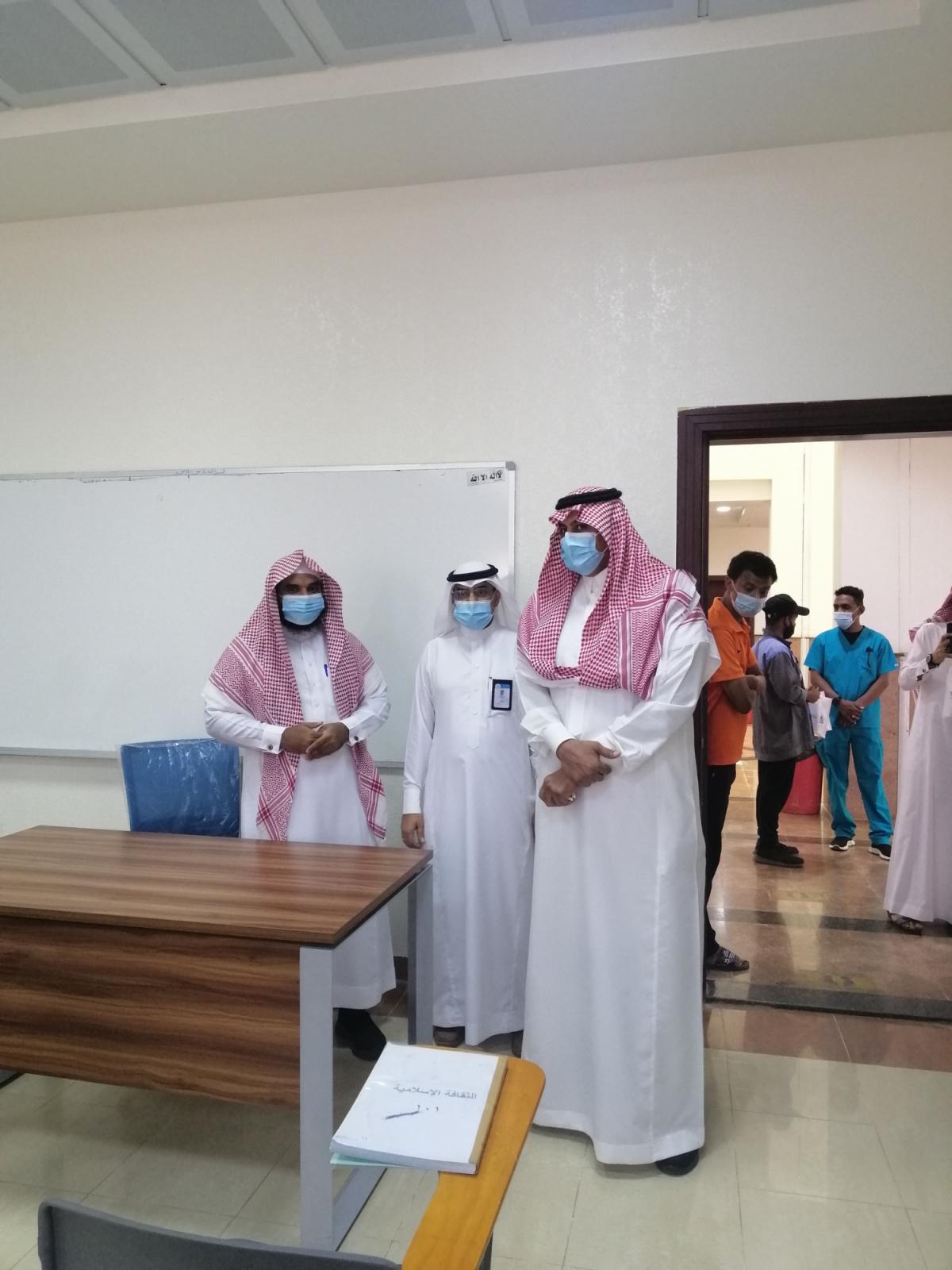 وكان في استقباله فضيلة عميد كلية الشريعة أ.د محمد بن ناصر بن يحيى جده وأ.د علي بن محمد العطيف وكيل الكلية للشؤون الأكاديمية ودأحمد بن عايل معافا وكيل الكلية للتطوير ورؤساء الأقسام العلمية ومدير الإدارة الأستاذ محمد بن عبده ديباجي اطلع خلالها على سير العملية التعليمية والتأكد من الجاهزية للعودة الدراسية الآمنة