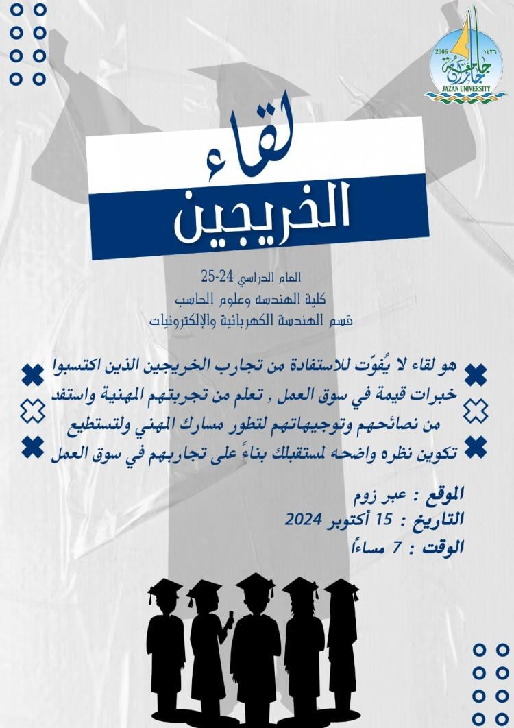 تستعد كلية الهندسة وعلوم الحاسب، قسم الهندسة الكهربائية والإلكترونية، لاستضافة ملتقى خريجيها في 15 أكتوبر 2024 عبر زوم. يهدف الملتقى إلى جمع الخريجين وتبادل الخبرات وبناء شبكة علاقات مهنية.