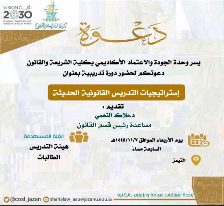 دورة تدريبية بعنوان استراتجيات التدريس القانونية الحديثة
