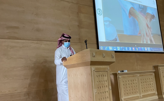 حيث افتتح الورشة بالترحيب بالطلاب والطالبات وأهمية هذه الرخصة في ظل جائحة كرونا للتعرف على أساسيات التعامل مع حالات العدوى والمسؤولية التي تقع على عاتق الممارسين الصحيين وما يجب عليهم معرفته علمياً وعملياً.