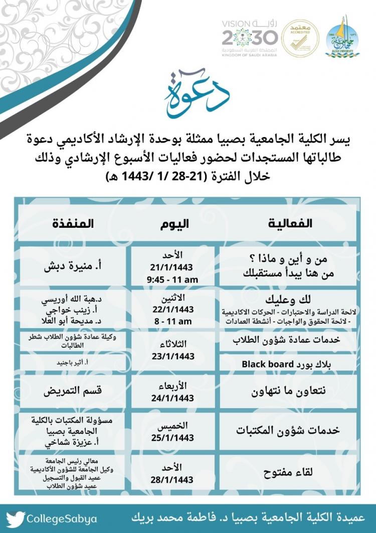 أسبوع إرشادي للمستجدات في الكلية الجامعية بصبيا