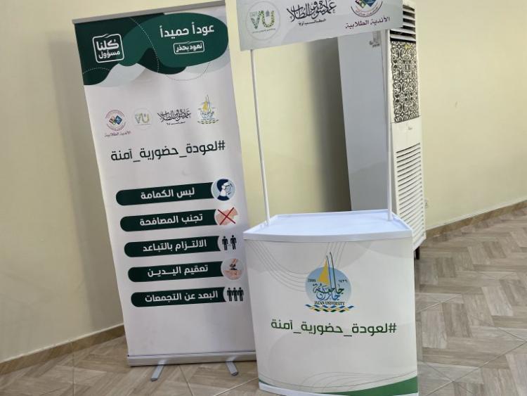 استقبلت وكالة كلية العلوم الطبية التطبيقية لشطر الطالبات أعضاء هيئة التدريس والطالبات بتوجيه وكيلة الكلية لشطر الطالبات الدكتورة نوف بنت حسين أبو هادي و مشرفة الشؤون الأكاديمية الدكتورة سالي با جابر لمتابعة تطبيق كامل الإجراءات الاحترازية حسب ما نصت عليه بروتوكولات جامعة جازان و لوائح وزارة الصحة ضمن خطة الجامعة للعودة الآمنة.