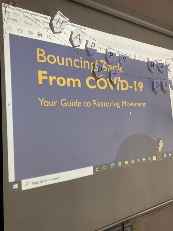 وهدفت الورشة لنشر الوعي باليوم العالمي للعلاج الطبيعي وأهمية العلاج الطبيعي في إعادة تأهيل المتعافين من COVID-19.
