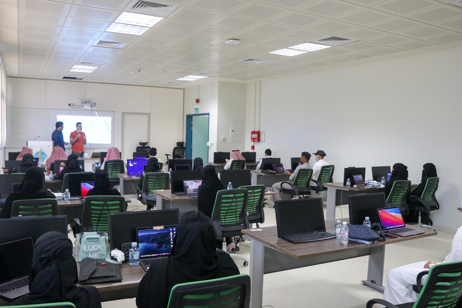 وكيل كلية علوم الحاسب وتقنية المعلومات ورئيس اللجنة المشرفة على المعسكر الدكتور موسى بن محمد خبراني أوضح أن هذا المعسكر يهدف إلى تأهيل القدرات والكوادر الشابة من خريجي وخريجات كليات علوم الحاسب الآلي في منطقة جازان في أحدث المجالات التقنية، حيث انطلق المعسكر في مساره التدريبي الأول بمشاركة 27 طالب وطالبة، ويستمر لمدة 3 أشهر وينتهي بالتوظيف.