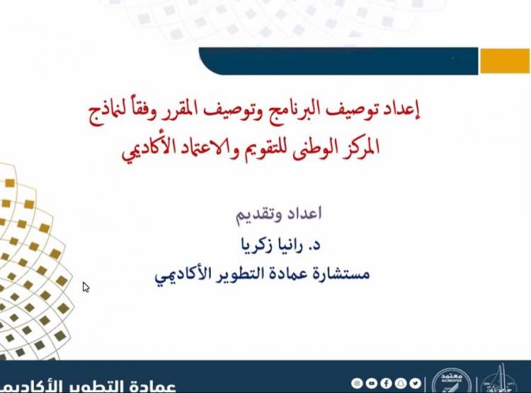 عمادة التطوير الأكاديمي تقيم ورشة "إعداد توصيف البرنامج المقرر"