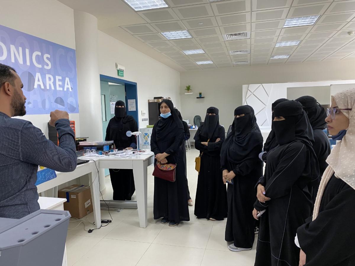 كما اطلعت الطالبات على تقنيات التصنيع الرقمي بمعمل الفاب لاب. وفي نهاية الورشة التدريبية تم عمل بعض النماذج على الطابعات ثلاثية الأبعاد وقاطعات الليزر. وحثّت مشرفة وحدة الابتكار وريادة الأعمال جميع الطلاب والطالبات، خاصة المتوقع تخرجهم، على زيارة وحدة الابتكار وريادة الأعمال وتحويل مشاريع وأبحاث تخرجهم إلى قيمة مضافة وتصنيع مشاريعهم وأفكارهم الابتكارية والإبداعية من خلال خدمات المركز ومعامله، ومنها معمل التصنيع الأولّي (الفاب لاب)
