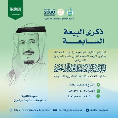 أقامت الكلية الجامعية بالدرب احتفالها بهذه الذكرى والمناسبة الوطنية العظيمة، بمشاركة كل من وحدة الأنشطة الطلابية ووحدة العلاقات العامة والإعلام وبالتعاون مع الأقسام الأكاديمية بالكلية، وبحضور كلّ من سعادة وكيلة الكلية للشؤون الأكاديمية أ. وفاء عسيري ووكيلة الكلية للتطوير أ. وقار النسا بوت، وعدد كبير من عضوات هيئة التدريس وطالبات وموظفات الكلية، حيث بدأ الحفل بمقدمة وكلمات تعبر عن الولاء لسمو سيدي سلمان بن عبدالعزيز آل سعود -حفظه الله- من الطالبة جنى مرياحي ثم بآيات من الذكر الحكيم ومن ثم السلام الوطني ومن بعده توالت مشاركات الأقسام في الفعالية.