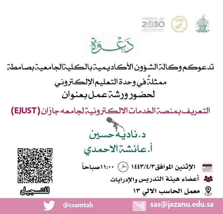 التعريف بمنصة الخدمات الإلكترونية لجامعة جازان EJUST بالكلية الجامعية بصامطة