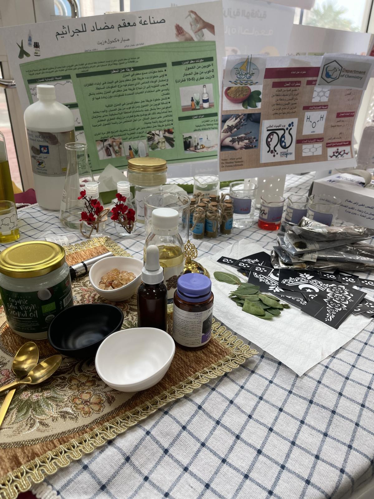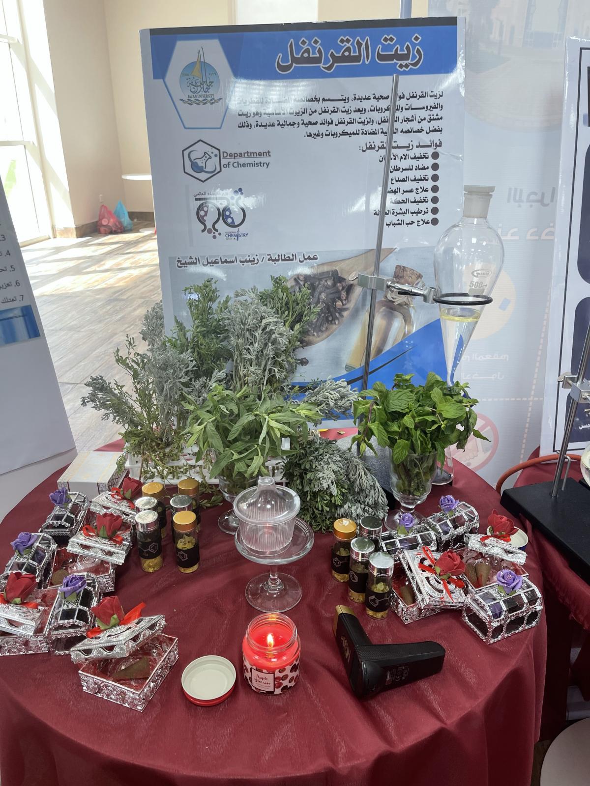 نظم قسم الكيمياء بكلية العلوم معرضا للاحتفال باليوم العالمي للكيمياء في مقر الكلية بحضور وكيلة الجامعة لشؤون الطالبات الدكتورة فاطمة عقيلي ووكيلة كلية العلوم الدكتورة آمنة شماخي وعدد من عميدات الكليات وأعضاء هيئة التدريس بالقسم وطالبات المجمع في جو تعليمي ممتع.