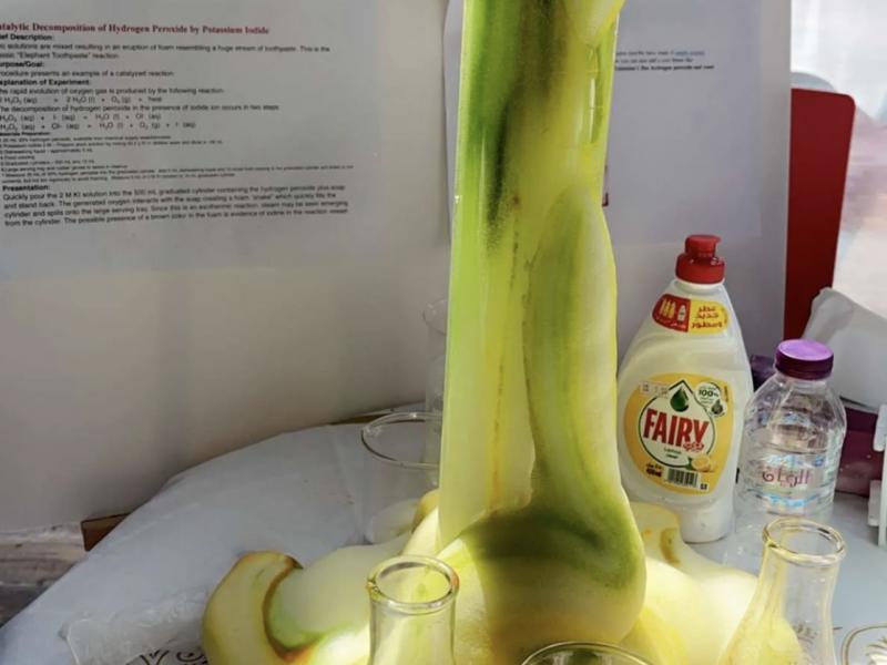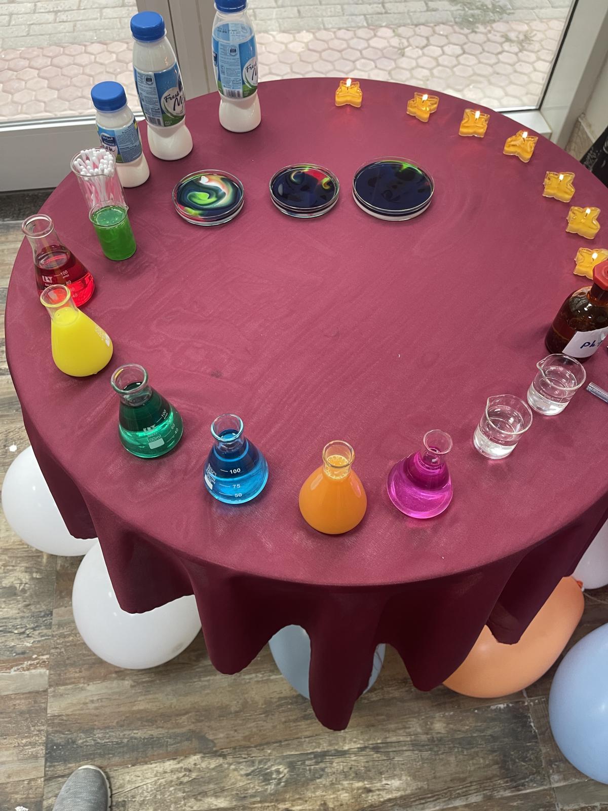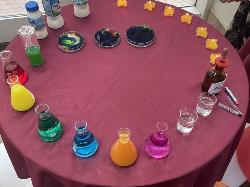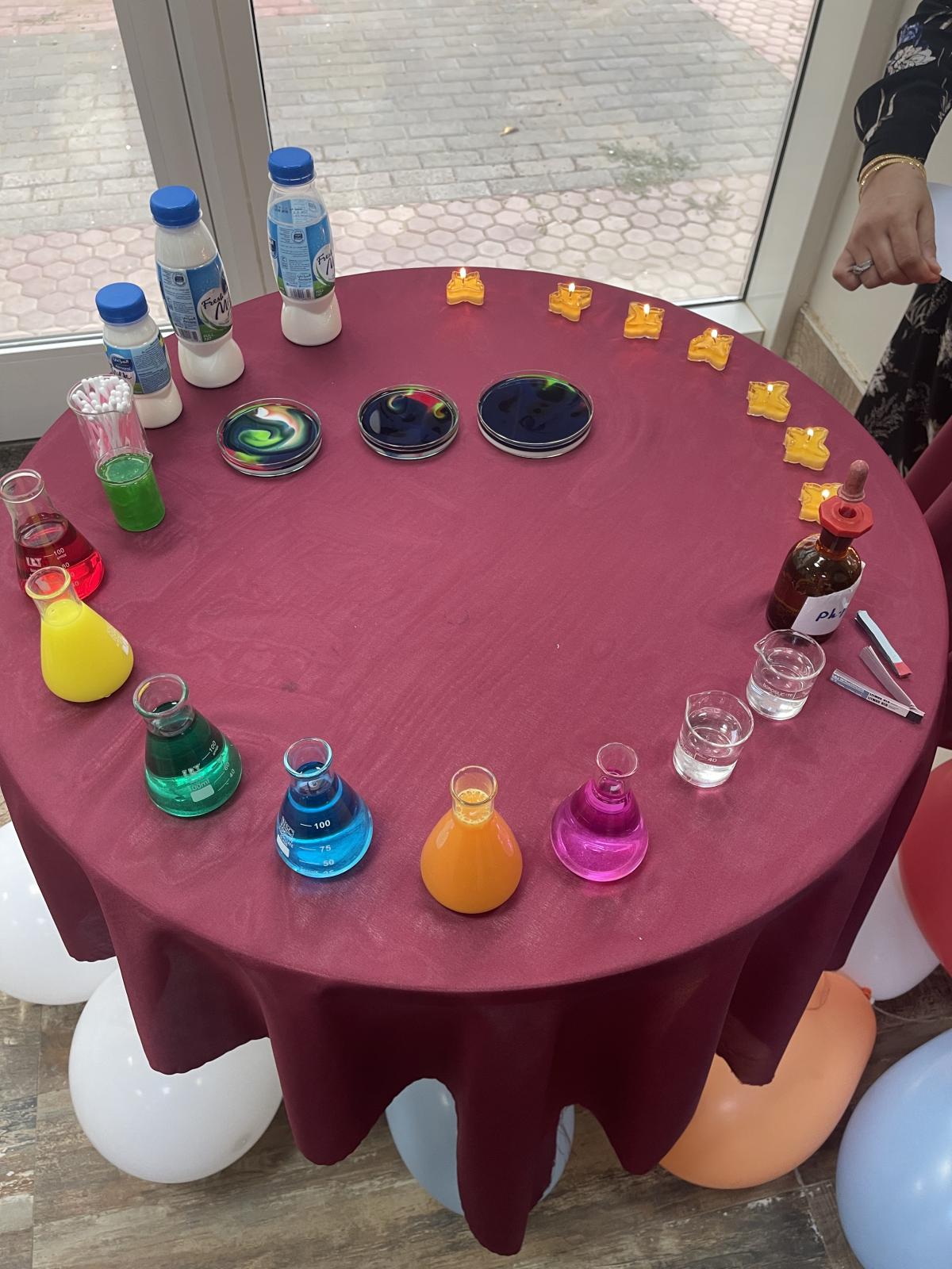 بعد ذلك تم تعريف الحضور بالأركان الموجودة في المعرض والتي اشتملت على أكثر من 15 ركن تم فيها عرض الكيمياء بطريقة مبسطة وممتعة.