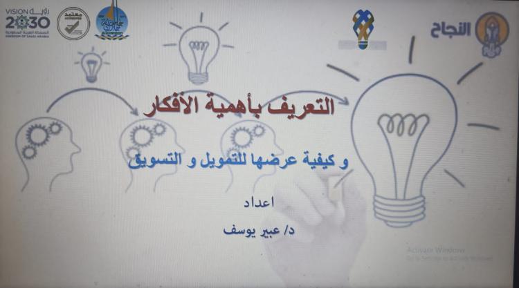 قدمت وحدة الإبتكار وريادة الأعمال بالكلية الجامعية بالداير ورشة عمل بعنوان "التعريف بأهمية الأفكار و كيفية عرضها للتسويق". ضمن فعاليات الاحتفال بالأسبوع العالمي لريادة الأعمال بحضور عميدة الكلية الدكتورة تنوير أحمد هندي.