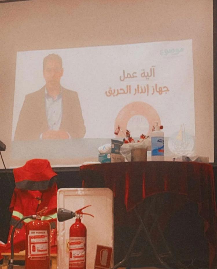 وتضمنت الورشة عدداً من المحاور أبرزها تعريف وحدة السلامة والصحة المهنية وتعريف السلامة وأهداف السلامة ومعداتها وكيفية استخدام طفاية الحريق وتركيبها وبطانية الحريق واستخداماتها وشبكة الإنذار ومخارج الطواري وقد تم شرح موجز عن هرم السلامة وخطة الإخلاء في حالات الطوارئ.