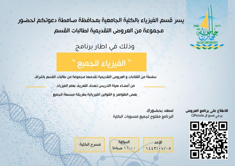 اللقاء الثاني لبرنامج الفيزياء للجميع في الكلية الجامعية بصامطة