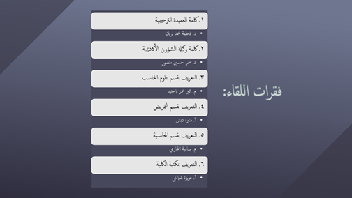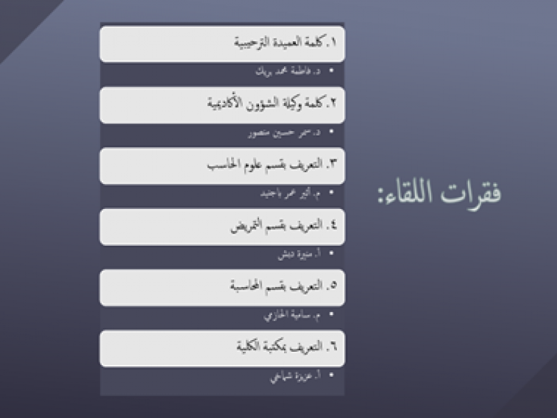 واختتم اللقاء بتعريف عن مكتبة الكلية وما تقدمه من خدمات للطالبات.