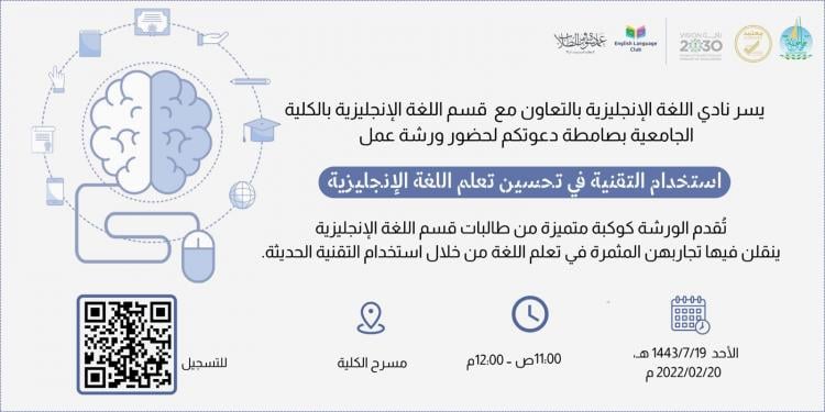 وقد قدمت الورشة كوكبةً متميزة من أعضاء نادي اللغة الإنجليزية من طالبات القسم، حيث شاركن خبراتهن المثمرة في تعلم اللغة الإنجليزية من خلال استخدام وسائل التقنية الحديثة.
