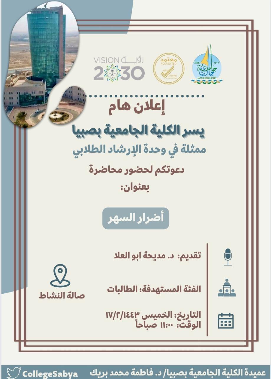 ندوتي النماذج الإرشادية وأضرار السهر في الكلية الجامعية بصبيا