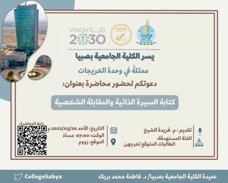 كتابة السيرة الذاتية واجتياز المقابلة الشخصية في الكلية الجامعية بصبيا