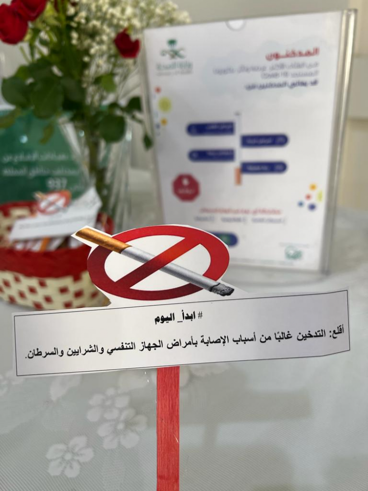 كما تم عرض خطوات الإقلاع عن التدخين، والتعريف بعيادات الإقلاع عن التدخين التابعة لوزارة الصحة وسُبُل الوصول إليها من خلال الاتصال بالرقم الموحد لوزارة الصحة.