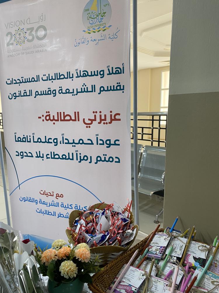 استقبلت كلية الشريعة والقانون طالباتها المستجدات للفصل الدراسي الأول للعام الجامعي ١٤٤٤هـ بإشراف وحضور وكيلة الكلية الدكتورة زكرية بنت أحمد غلفان زكري حيث تم استقبال الطالبات المستجدات بمشاركة من سكرتارية وحدة الإرشاد الطلابي الأستاذة صالحة بنت أحمد علي مطهري.