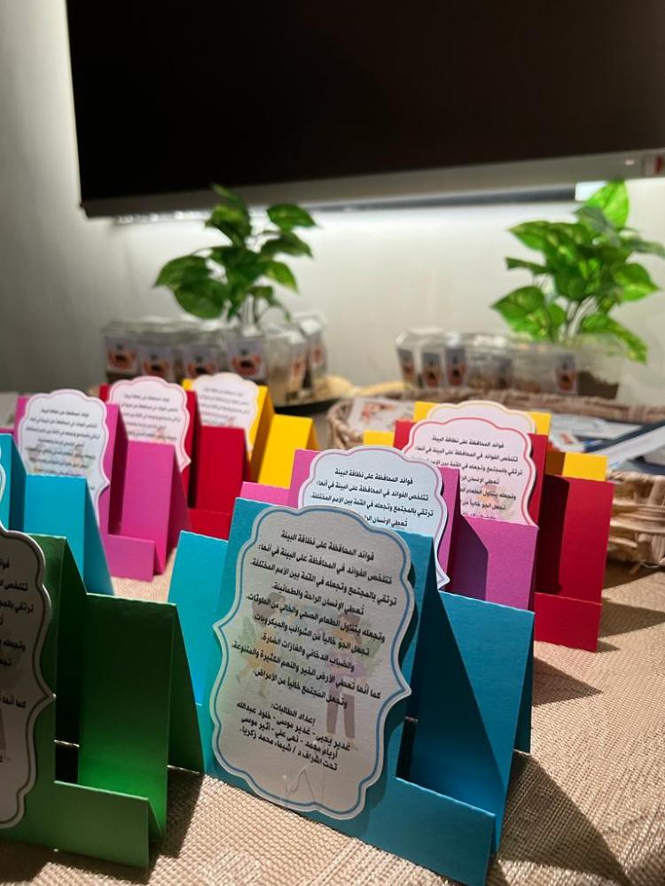 كما تم مناقشة دور المؤسسات المجتمعية بشكل عام للحفاظ على البيئة، واستعراض أهم التدابير الوقائية للتعامل مع المشكلات البيئية إضافة إلى عرض بعض أعمال الطالبات بالقسم مثل (أعمال إعادة التدوير – إرشادات للحفاظ على البيئة – أمثلة لبعض النباتات التى تحافظ على البيئة