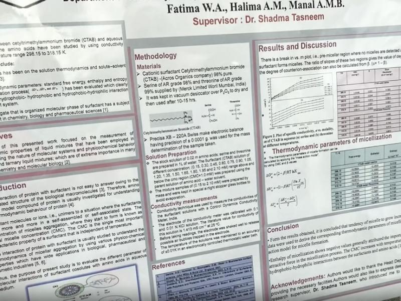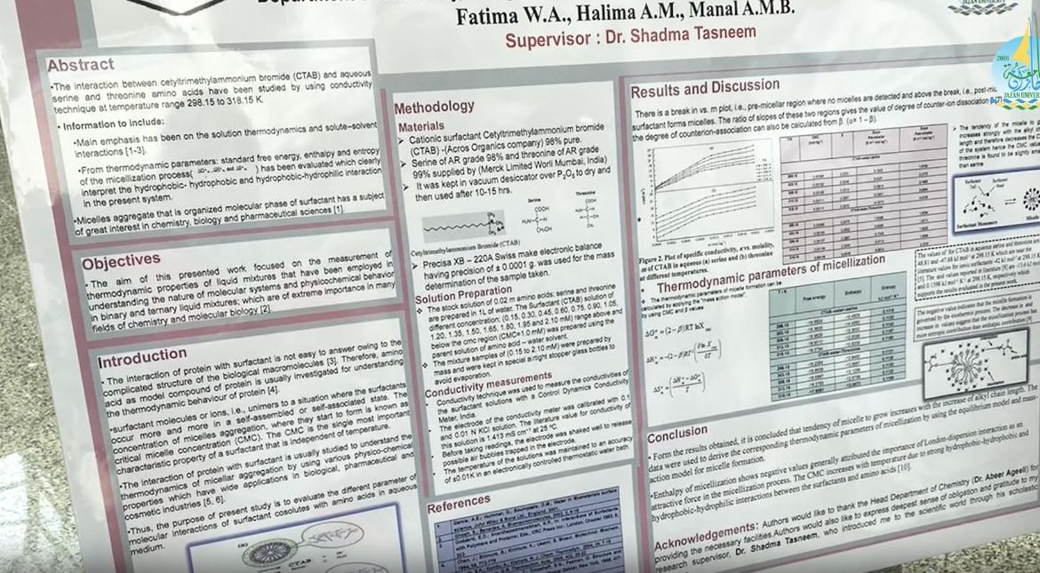 من جانبه أكدت كلاً من مساعد رئيس قسم الفيزياء د/ عيش مدخلي ومساعد رئيس قسم الكيمياء د/ عبير عقيلي على أهمية مثل هذه النشاطات في تطوير وتنمية خبرات الطلبة وقدراتهم، وأشادتا بالمستوى المتقدم الذي وصلن إليه الطالبات كما وجهتا عدة نصائح لطلاب السنة النهائية منها الجد والمثابرة، وعدم الإنصات لكلمات الإحباط، والإصرار على مواصلة الحلم حتى تحقيقه، مع ضرورة القراءة والتزود بالكثير من المهارات الخاصة كما حرص على تقديم التهنئة للطلاب على تخرجهم .